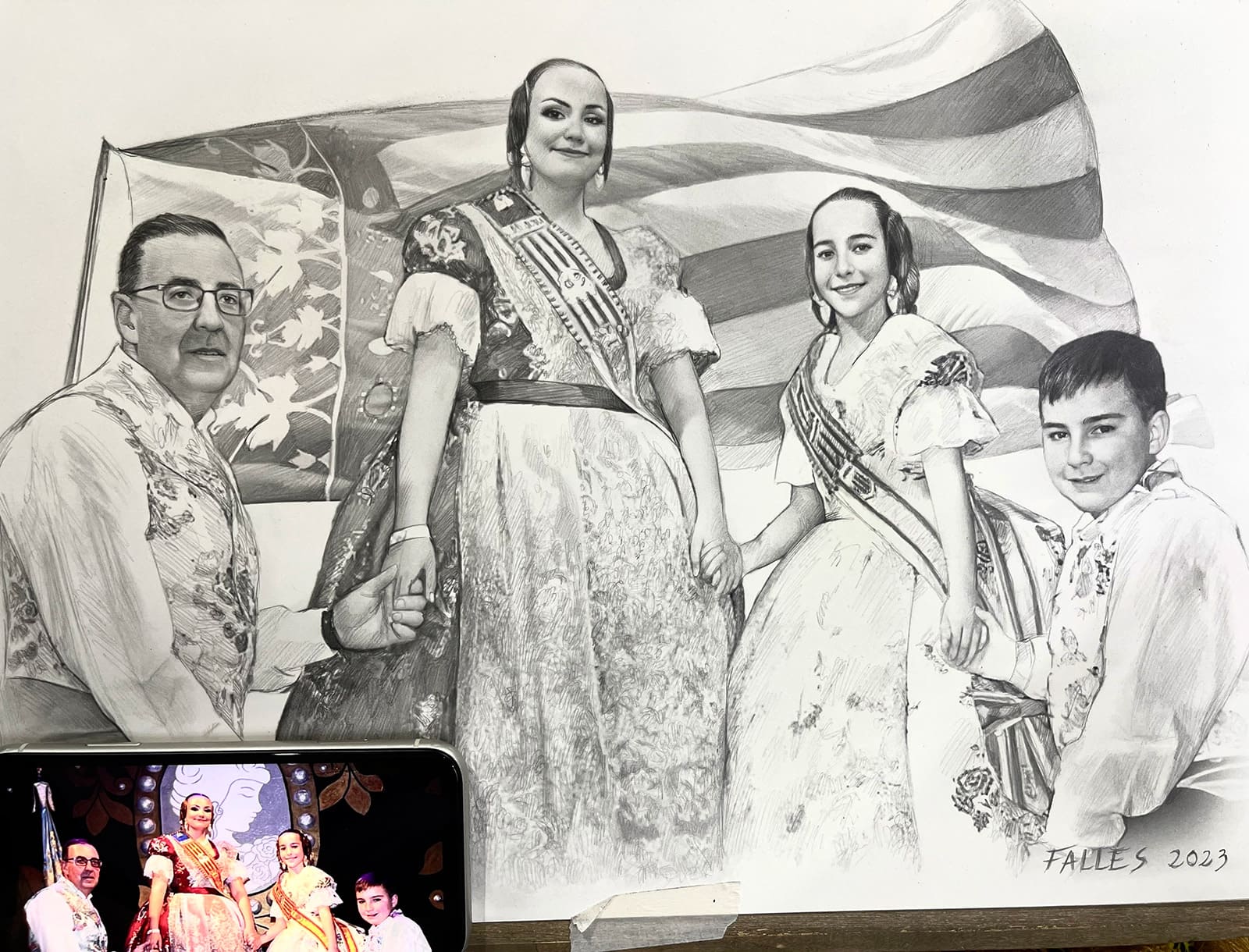 retrato a lápiz por encargo de fallas 2023